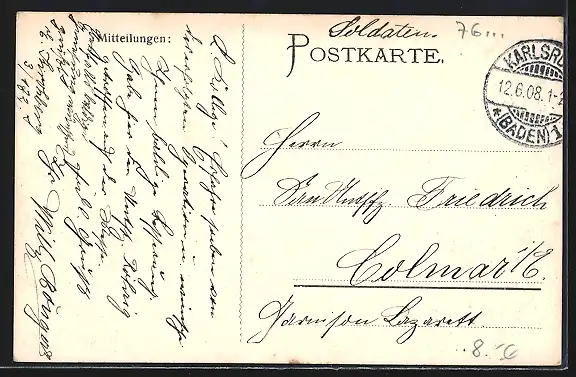alte Ansichtskarte, gelaufen 1908, Stempelspur, guter Zustand