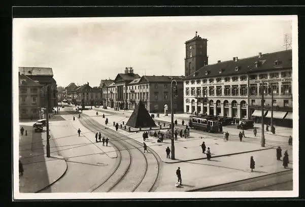 AK Karlsruhe, Marktplatz mit Strassenbahn