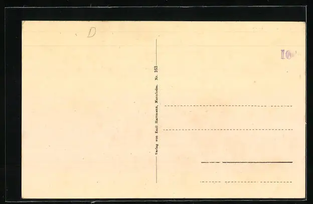 Personenbezogene Daten auf der Rückseite der Karte wurden durch blauen Textmarker unkenntlich gemacht. Die blauen Stellen sind auf die Vorderseite durchgeweicht und wirken sich negativ auf das Postkartenfoto aus