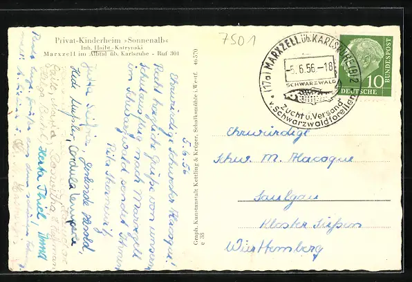AK Karlsruhe, Marxzell, Privat-Kinderheim Sonnenalb
