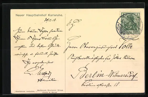 AK Karlsruhe, Neuer Hauptbahnhof aus der Vogelschau