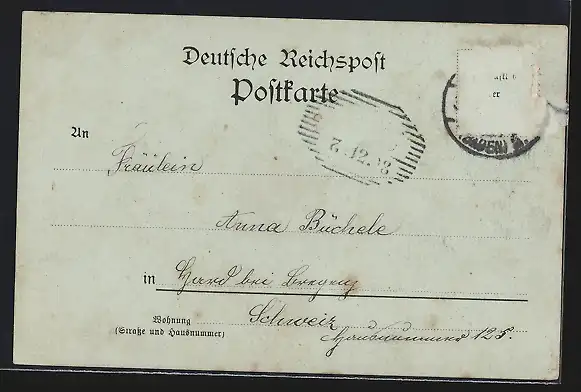 alte Ansichtskarte, gelaufen 1898, Briefmarke entfernt, guter Zustand