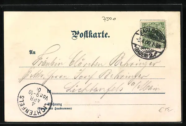 alte Ansichtskarte, gelaufen 1900, guter Zustand