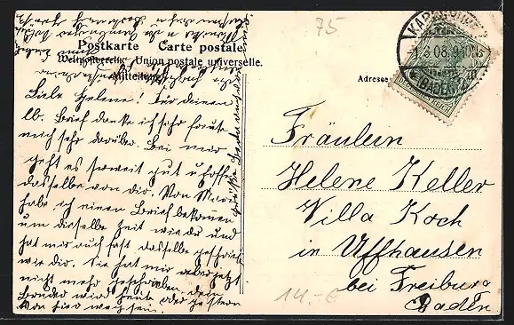 alte Ansichtskarte, gelaufen 1908, guter Zustand