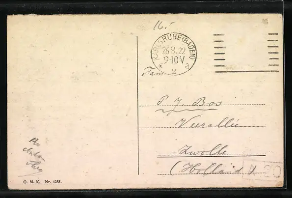 alte Ansichtskarte, gelaufen 1922, Briefmarke entfernt, rückseitig Oberflächenschaden, guter Zustand