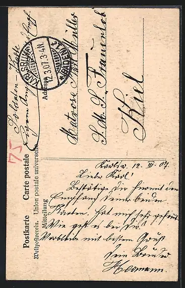 alte Ansichtskarte, gelaufen 1907, guter Zustand