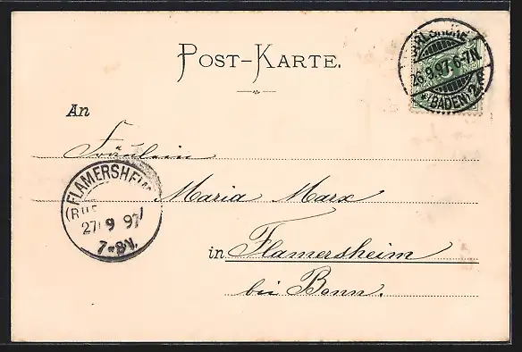 alte Ansichtskarte, gelaufen 1897, guter Zustand