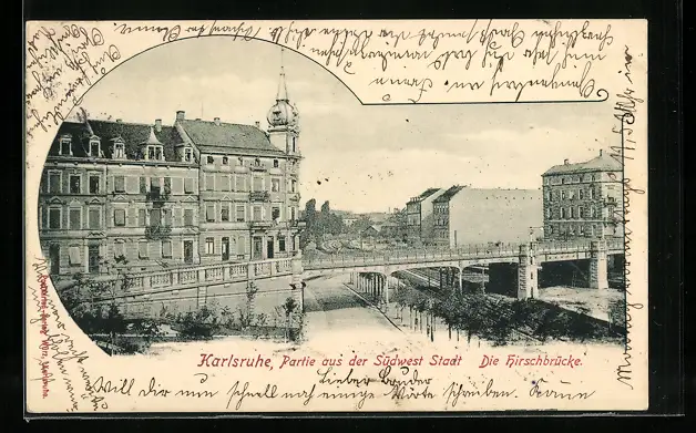 AK Karlsruhe, Partie aus der Südwest Stadt, Die Hirschbrücke