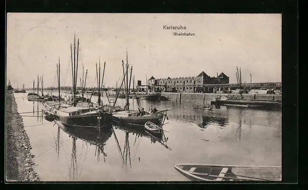 AK Karlsruhe, Partie vom Rheinhafen
