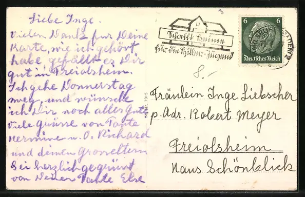 alte Ansichtskarte, gelaufen 1937, guter Zustand