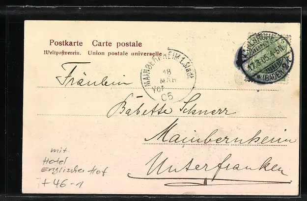 alte Ansichtskarte, gelaufen 1905, guter Zustand