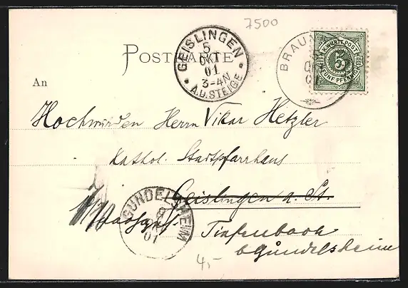 alte Ansichtskarte, gelaufen 1901, guter Zustand