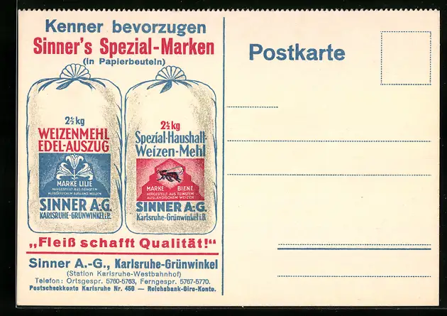 AK Karlsruhe, Reklame Sinner-Mehl