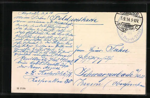 alte Ansichtskarte, gelaufen als Feldpost 1914, guter Zustand