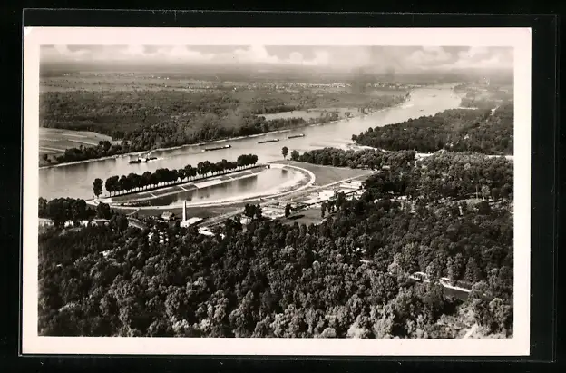 AK Karlsruhe, Rheinstadtbad Rappenwört, Fliegeraufnahme