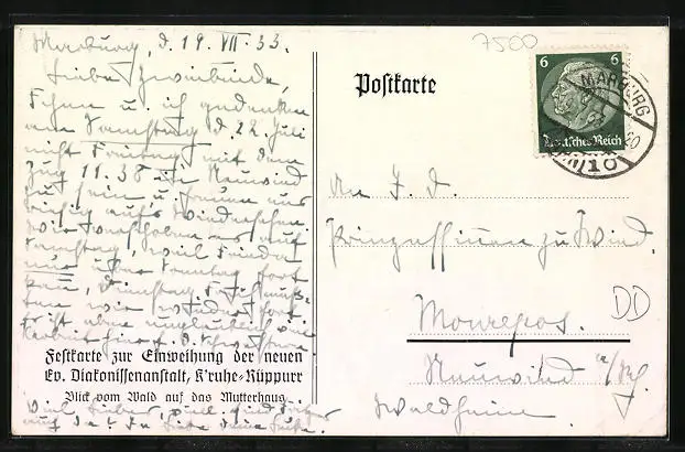AK Karlsruhe-Rüppurr, Blick auf das Mutterhaus