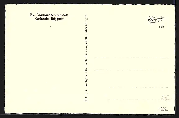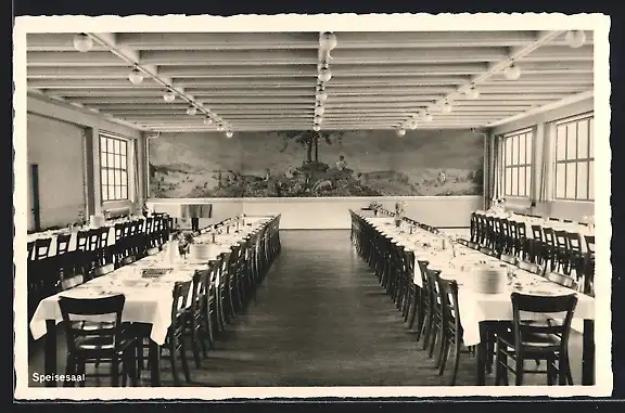 AK Karlsruhe-Rüppurr, Evangelische Diakonissen-Anstalt, Speisesaal, Innenansicht