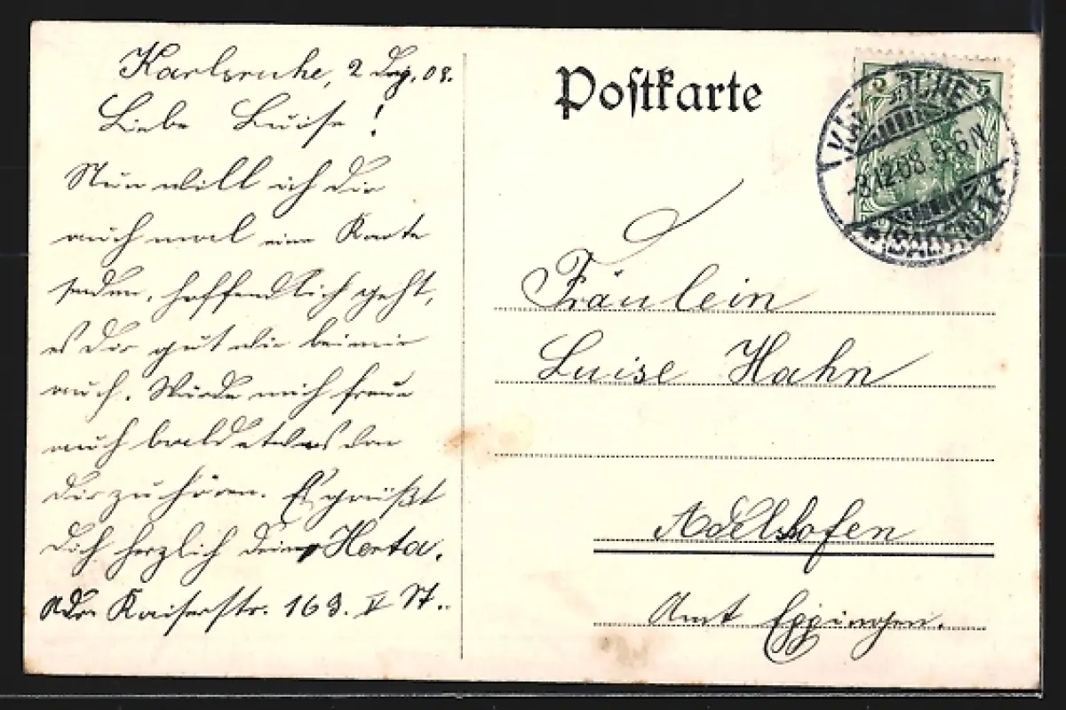 alte Ansichtskarte, gelaufen 1908, Stempelspur, guter Zustand