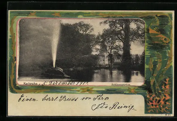 AK Karlsruhe, Schlossgarten mit Springbrunnen