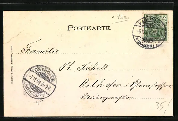 alte Ansichtskarte, gelaufen 1901, Eckknick oben re., guter Zustand