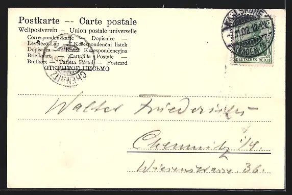 alte Ansichtskarte, gelaufen 1902, guter Zustand
