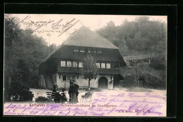 AK Karlsruhe, Schwarzwaldhaus im Stadtgarten