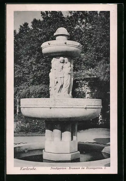 AK Karlsruhe, Stadtgarten, Brunnen im Rosengarten