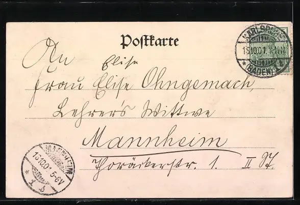 alte Ansichtskarte, gelaufen 1901, Eckknick rechts oben, guter Zustand