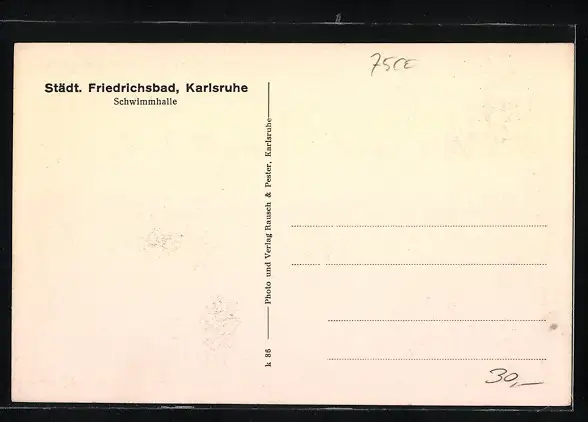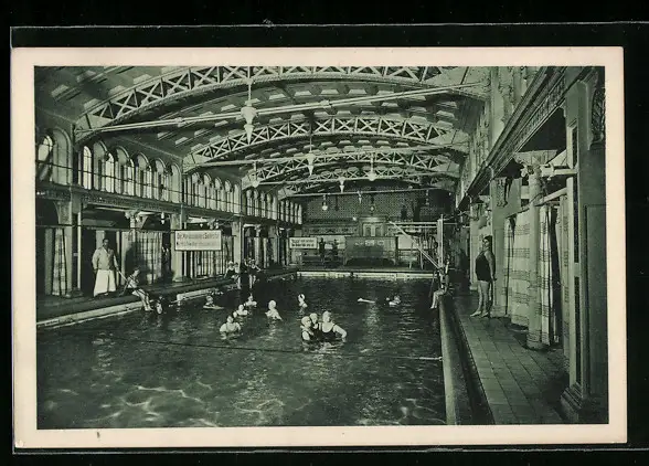 AK Karlsruhe, Städtisches Friedrichsbad, Schwimmhalle, Innenansicht