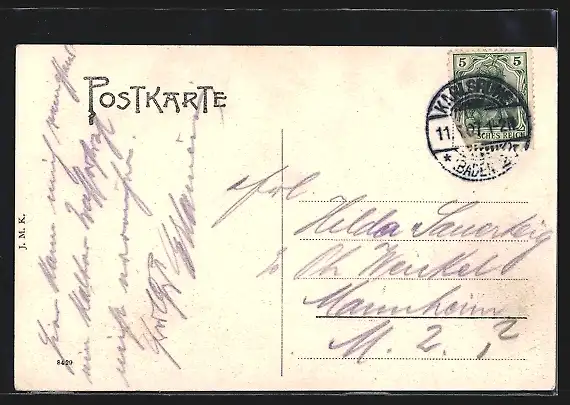 alte Ansichtskarte, gelaufen 1907, Briefmarke entfernt, Stempelspur, guter Zustand