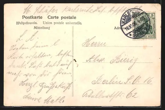 alte Ansichtskarte, gelaufen 1906, Stempelspur, Eckknick li. oben, guter Zustand