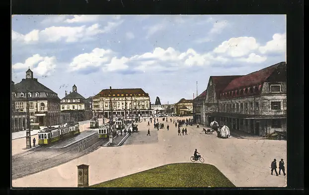 AK Karlsruhe, Strassenbahn am Bahnhofsplatz