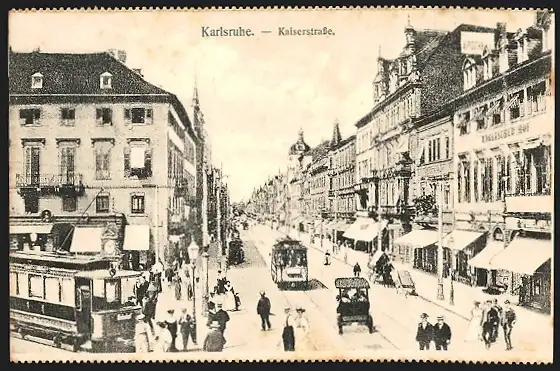 AK Karlsruhe, Strassenbahn an der Kaiserstrasse