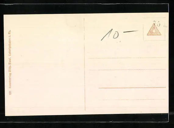 Personenbezogene Daten auf der Rückseite der Karte wurden durch blauen Textmarker unkenntlich gemacht. Die blauen Stellen sind auf die Vorderseite durchgeweicht und wirken sich negativ auf das Postkartenfoto aus