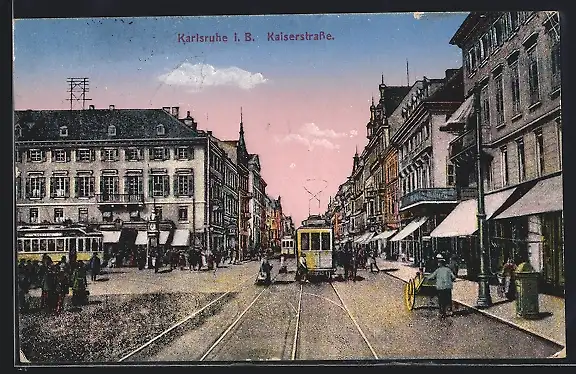 AK Karlsruhe, Strassenbahn in der Kaiserstrasse