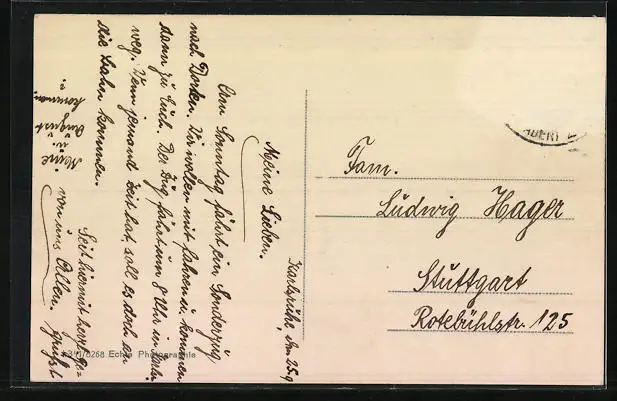 alte Ansichtskarte, gelaufen, Briefmarke entfernt, rückseitig Oberflächenschaden, guter Zustand