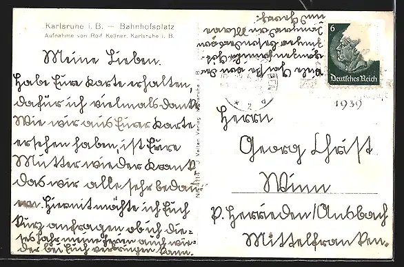 gelaufen 1939, Briefmarke entfernt, Eckknick oben li., guter Zustand