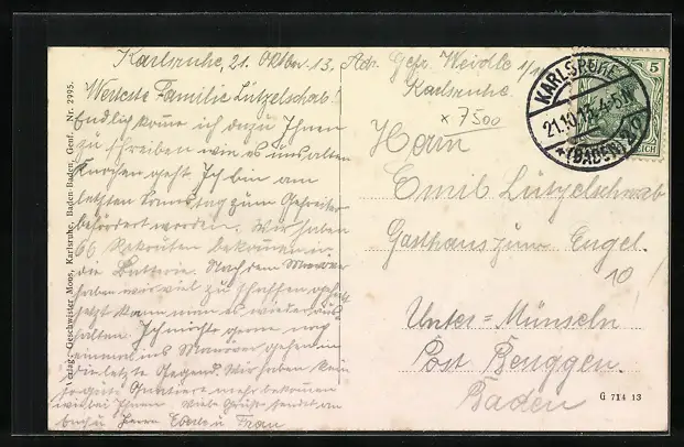alte Ansichtskarte, gelaufen 1913, guter Zustand