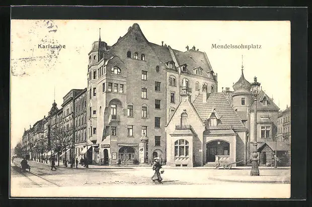 AK Karlsruhe, Strasseneck am Mendelssohnplatz