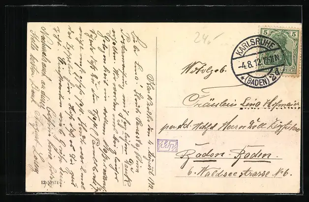 gelaufen 1912, Stempelspur, guter Zustand