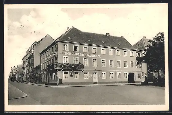 AK Karlsruhe, Strassenpartie am Hotel Braunes Eck