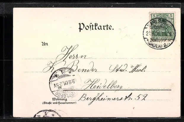 alte Ansichtskarte, gelaufen 1901, guter Zustand