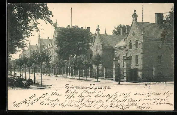 AK Karlsruhe, Strassenpartie mit Grenadierkaserne