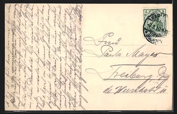 alte Ansichtskarte, gelaufen 1910, Stempelspur, guter Zustand
