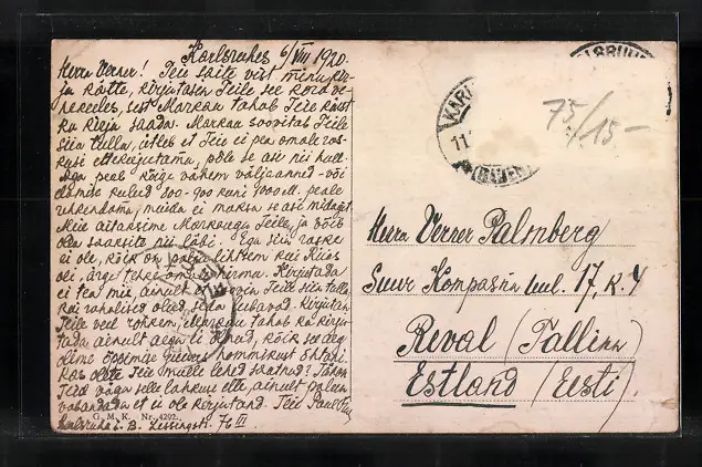 gelaufen 1920, Briefmarke entfernt, guter Zustand