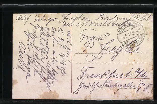 alte Ansichtskarte, gelaufen 1917, rückseitig Klebe- und Papierreste, Eckknick li. oben, guter Zustand