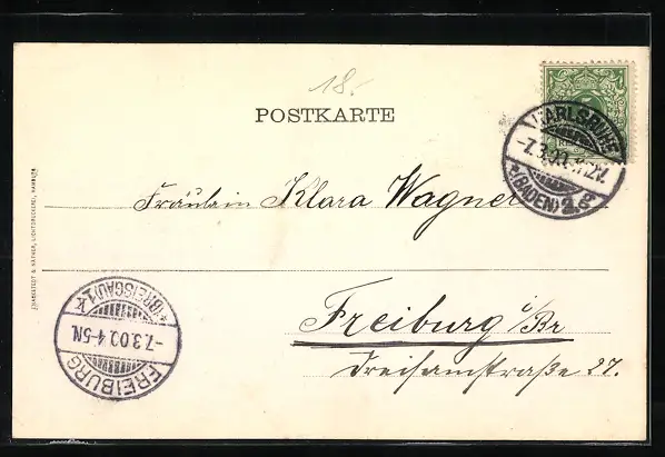 alte Ansichtskarte, gelaufen 1900, guter Zustand