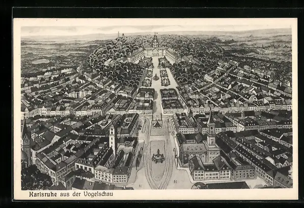 AK Karlsruhe, Totalansicht aus der Vogelschau