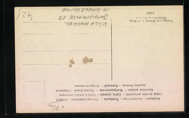 AK Karlsruhe, Villa Meckel in der Jahnstrasse 13