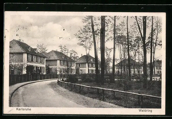AK Karlsruhe, Waldring, Strassenpartie mit Siedlungshäusern